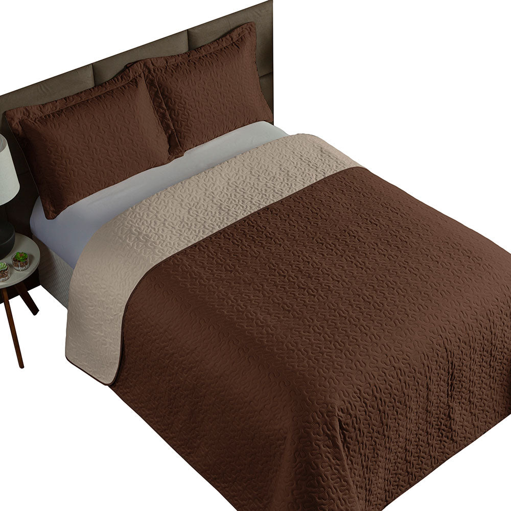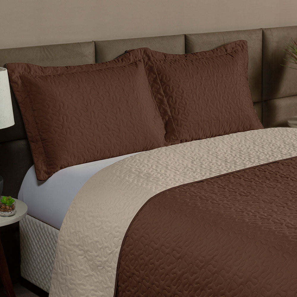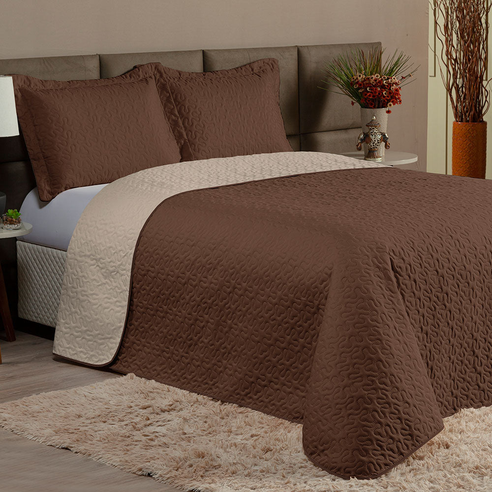Sendo todo matelado, formando o desenho caminho sem fim, e com o porta travesseiro com debrum, o cobre leito traz a decoração mantendo um ambiente leve para a sua cama