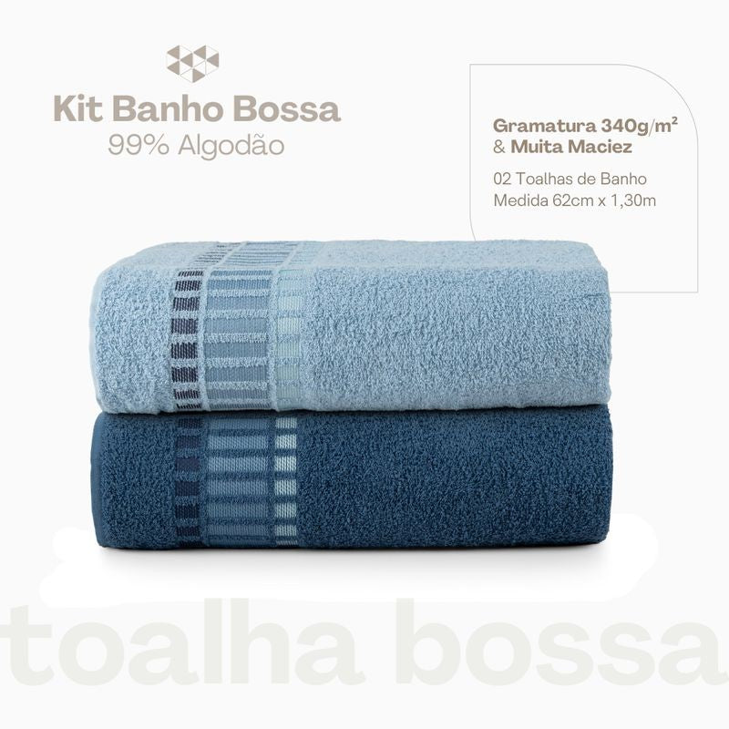 Kit 02 Toalhas de Banho Avulsas Bossa Tons de AzulKIT COM 2 TOALHAS AVULSAS DE BANHO BOSSA