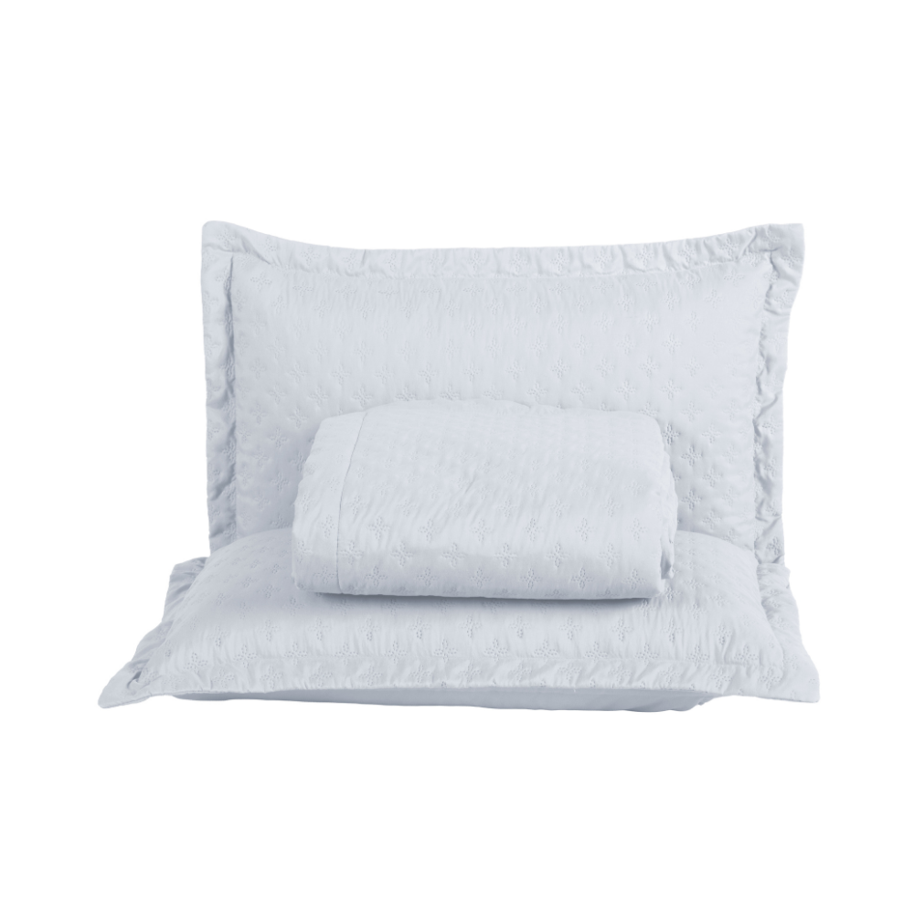 - O porta travesseiro mede 70cm x 50cm e possui aba americana;